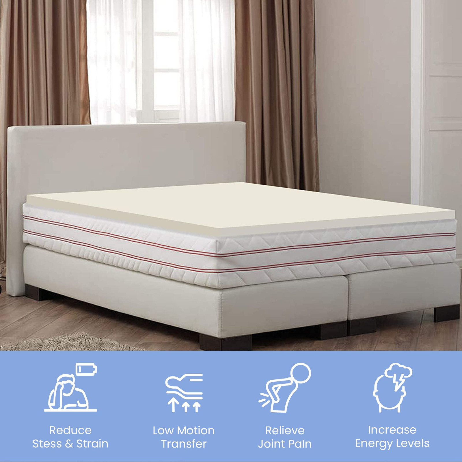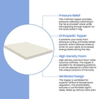 The premium foam adds luxurious softness while not taking away from the support of the mattress. These bed toppers have been effective in enhancing the comfort level of new and old mattresses alike, providing a better sleep experience for most people. This Breathable Foam Topper is made from good quality foam that gently cradles you in individualized comfort and support. It also provides you with pressure-relieving cushioning in the hip and shoulder areas while still supplying enough support, so the body doesn't get imbalanced. These unique mattress toppers are to be used on top of your mattress for additional comfort. This prevents your body from sinking and curling while sleeping and promotes a better posture, which reduces and strain on your spine and increases energy levels during the day. Our premium-level mattresses are here to help you get the best possible comfort at all times when you sleep or lie down to relax. Comfort: A mattress topper can add an extra layer of comfort to your mattress, making it feel softer and more luxurious. This can be especially beneficial if you have a firm or uncomfortable mattress. Support: Toppers can provide additional support to your body while you sleep. This can help alleviate pain and pressure points and promote better alignment of your spine. CertiPUR-US certified foam: Rest easy knowing that the topper's foams are CertiPUR-US certified, meeting stringent standards for durability, performance, and content. Quality you can trust. Temperature regulation: Mattress toppers are designed to regulate temperature and keep you cool during the night. This can be especially beneficial if you tend to overheat while you sleep. Cost-effective: If you're not ready to invest in a new mattress, a mattress topper can be a cost-effective solution to improve your sleep experience. It's also easier to replace a topper than a mattress, which can be a more affordable option in the long run.