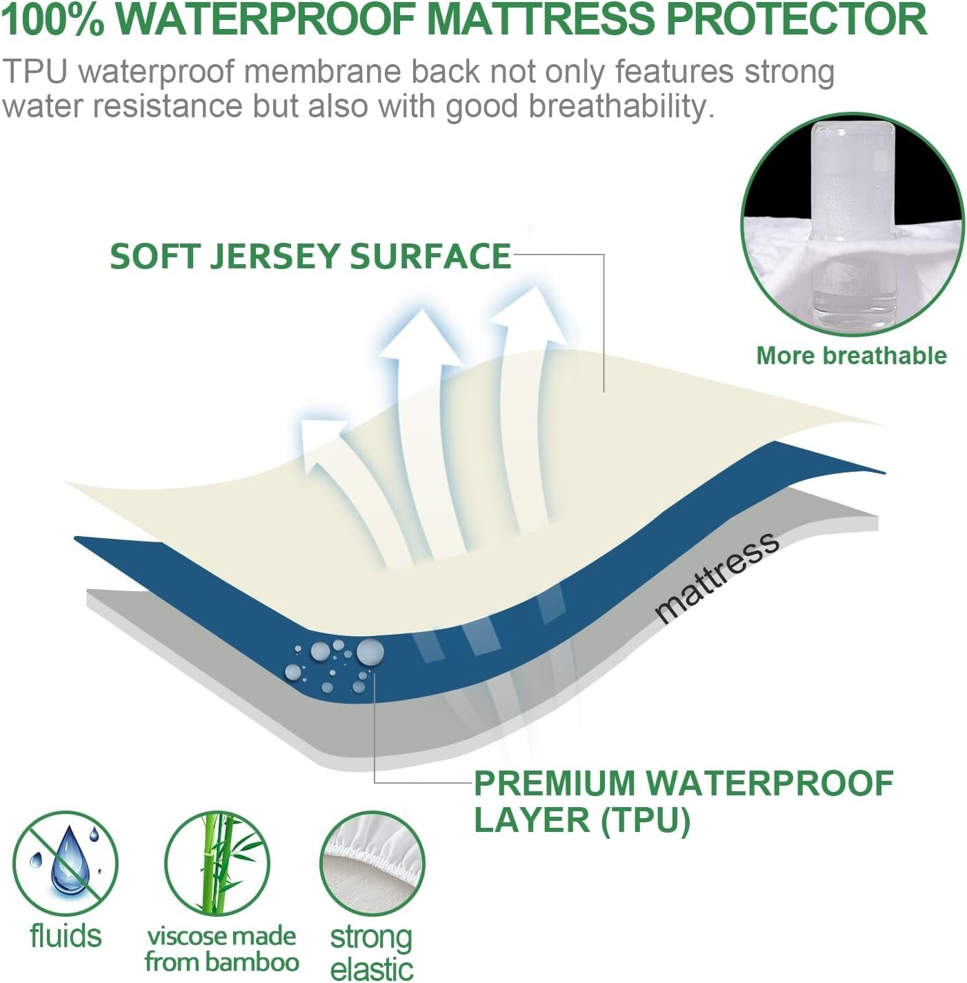 Breathable Full Size Mattress Protector with 14" Deep Pocket - Bamboo Fabric ‹ › ‹ › ‹ › ‹ › ‹ › ‹ › ‹ › ‹ › ‹ › Breathable Full Size Mattress Protector with 14" Deep Pocket - Bamboo Fabric Experience the epitome of comfort and protection with our Breathable Full Size Mattress Protector, expertly crafted with bamboo viscose for the ultimate sleeping experience. Key Features: Soft and Breathable: Made from breathable viscose derived from bamboo jersey, this mattress protector promotes airflow for a comfortable sleep while also resisting odors and facilitating rapid odor removal. Waterproof and Noiseless: The full-size protector features a 100% waterproof TPU layer on the back, shielding your precious mattress from liquids, perspiration, bedwetting, and stains while ensuring a noiseless night's sleep. Elastic Stretchy Skirt: Designed with an elastic stretch skirt that accommodates mattresses up to 14 inches in height, ensuring a snug fit for diverse mattress needs. Machine Washable: Convenient and practical, our protector is machine washable in cold water to prevent shrinking, maintaining its quiet and comfortable feel after every wash. Guarantee: Trust in the quality of our full waterproof mattress cover. If you encounter any issues with our product, contact us for a hassle-free replacement or . Why Choose Our Mattress Protector? Elevate your sleep experience while safeguarding your mattress with our luxurious yet highly functional mattress protector. The unique combination of breathable bamboo fabric and a waterproof layer means you can enjoy unparalleled comfort without compromising on protection. Experience restful nights filled with comfort and peace of mind. Don’t settle for less – invest in a cleaner, dryer, and more comfortable sleep environment. Order your Breathable Full Size Mattress Protector today and redefine the way you sleep! Shipping Free & Fast Shipping - We offer free shipping to most of the USA with a normal delivery time of 3-7 days. However, due to the current situation, additional delivery time (up to 3 weeks) may be required for some items. Alternative Carriers - We may use alternative carriers (e.g. USPS, FedEx, UPS, etc.) to ensure your package arrives safely and on time. Due to the use of multiple carriers, we are unable to provide a tracking number automatically. Handling Time - Orders are processed and shipped within 1-2 business days of receiving cleared payment. Shipping Restrictions - Shipping to Alaska, Hawaii, Puerto Rico, Guam, and other US territories may incur shipping charges or delivery restrictions. Please contact us before ordering, or your order can be refunded/cancelled. State Restrictions - There may be restrictions based on your state of purchase. For example, certain items may not be shipped to California due to state regulations. Contact for Tracking Updates - If you require tracking updates or have any concerns about the delivery of your order, please feel free to contact us, and we will be happy to assist you. Return 30-Day Hassle-Free Returns - We want you to be completely satisfied with your purchase. If you are not, you can return the item within 30 days of receiving it for a full refund or exchange. Easy Return Process - To start a return, simply contact us and we will provide you with a prepaid return shipping label and detailed instructions. Restocking Fee - There are no restocking fees for returns. However, the buyer is responsible for return shipping costs if the return is not due to a seller's error. Refund Processing Time - Refunds will be processed within 5 business days of receiving the returned item in its condition. Payment We accept all major credit cards, PayPal, and Apple Pay for your convenience. Your payment information is secure and encrypted to ensure a safe and seamless transaction. Please complete your payment within 3 days of purchase to avoid any delays in shipping. Feedback Your feedback is extremely important to us. We strive to provide the best products and customer service possible. If you are satisfied with your purchase, please take a moment to leave us a positive review. If you have any concerns or issues with your order, please contact us before leaving negative feedback. We are committed to resolving any problems and ensuring your satisfaction. Contact Us If you have any questions or concerns, please feel free to out to our customer support team. You can contact us through the eBay messaging system. We are available Monday to Friday, 9:00 am to 5:00 pm EST, and we will do our best to respond to your inquiry within 24 hours. Buy it now and enjoy a pleasant shopping experience! Item Length: Full Size Mattress Protector Item Width: Full Size Mattress Protector Unit Quantity: 1 Material: Bamboo,Polyester,Viscose,Bamboo Jersey Features: Cooling,Machine Washable,Waterproof,Breathable,Noiseless,Elastic Stretchy Skirt Care Instructions: Machine Wash Department: Unisex Baby & Toddler,Kids,Teens,Adults Room: Bedroom Size: Full Type: Mattress Protector Fill Material: None Closure Type: No Closure Color: White Insulation: Cool Style: Modern Shape: Rectangular Thread Count: 200 or Less GSM (Grams per Square Meter): 150 to 300 Unit Type: lb