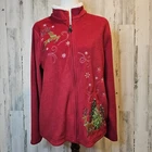 Celebrate the holiday season in style with this festive Breckenridge red fleece jacket. Designed for warmth and charm, it features a cozy sherpa-lined collar and intricate embroidered details, including a prancing reindeer, Christmas trees, and snowflakes. Perfect for holiday gatherings or casual winter outings. Brand: Breckenridge Size: Large (Women's) Material: 100% Polyester Color: Red Features: Sherpa-lined collar for added warmth Full-zip front with decorative pull charm Embroidered reindeer, Christmas trees, and swirling snowflakes Side pockets Measurements: Bust (pit to pit): Approx. 21 inches Length (shoulder to hem): Approx. 26 inches Condition: Pre-owned, gently worn, in excellent condition with no noticeable flaws. #BreckenridgeJacket #ChristmasJacket #RedFleeceJacket #SherpaCollar #HolidayFashion #ReindeerEmbroideredJacket #ChristmasGiftIdea #WinterWardrobe #WomenLarge