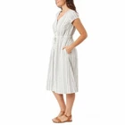 Briggs Women's A-Line Button-Front Side Pockets Dress Size: Medium Color: Stripe Content: 55% Linen / 45% Rayon