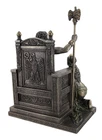 Zeus and Hera are the king and queen of the Olympian gods, overseeing the universe. This statue depicts the two of them at the throne, Zeus with lightning bolts and eagle topped staff in hand, and Hera by his side. Made of cold cast resin, it measures just over 11 inches tall, 7 1/2 inches wide, and 5 3/4 inches deep. This piece has a beautiful bronze finish, accented by subtle hints of color to emphasize the details in the folds of the garments, jewelry, and lightning bolts. This piece makes a great gift for mythology buffs that is sure to be admired. Our eBay Store About Us Add to Favorite Sellers Bronzed Zeus and Hera at the Throne Statue with Colored Accents 11 in. Tall, 7 1/2 in. Wide, 5 3/4 in. Deep Cold Cast Resin Bronzed Finish with Colored Accents Wonderfully Detailed Great Gift for Mythology Buffs Zeus and Hera are the king and queen of the Olympian gods, overseeing the universe. This statue depicts the two of them at the throne, Zeus with lightning bolts and eagle topped staff in hand, and Hera by his side. Made of cold cast resin, it measures just over 11 inches tall, 7 1/2 inches wide, and 5 3/4 inches deep. This piece has a beautiful bronze finish, accented by subtle hints of color to emphasize the details in the folds of the garments, jewelry, and lightning bolts. This piece makes a great gift for mythology buffs that is sure to be admired. Product Details Color Bronze Height 11 Length 7.5 Weight