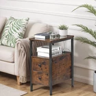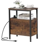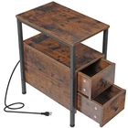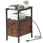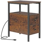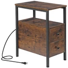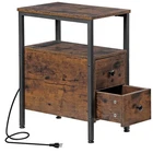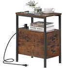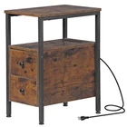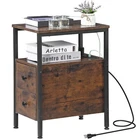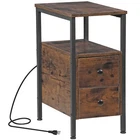 Specifications: Color:Brown Material:MDF,Particleboard Item Weight: 13KG/28.66 LBS Overall size: 48*30*61cm/18.8*11.8*24 in Chest of Drawers Size: 47*25*32cm/18.5*9.8*12.5 in Drawer Outer Size: 21.5*15*36.5cm/8.4*5.9*14.3 in Drawer Inner Size: 18*11.5*33.5cm/7*4.5*13.1 in Power Cord Length: 150cm/59 in Weight Capacity: Top: 44LBS The Second Layer: 20LBS Drawer: 10LBS Features: Sturdy and Stable: Made with high quality MDF & Particleboard, robust steel frame, durable wood drawers, 4 adjustable feet can keep leveling and avoiding scratching the floor, this small side tables will serve you for many years. Chairside Table with Charging Station: The charging station with 4.9ft long power includes two 3-prong outlets and 2 USB ports which can easily charge your phone, tablet, desk lamp or your laptop.The spacing is sufficient, which satisfies you to use multiple plugs simultaneously. Security Upgrade: The charging area is under the desktop, you don’t have to worry about children accidentally touching it when charging; and you can put drinks on the end table, don’t worry about leakage caused by spilled liquid.Also save table top space, allowing small table top to store more items. Versatile Storage Options: With 2 sliding wood drawers and a open shelf, the drawers is convenient to pull in and out ,and make it easy to store and access personal essentials.You can place your lamp, phone, coffee cup on the top panel, store books, game consoles in the middle shelf, and hold some private items in the drawers. Easy to Assemble: The package comes with easy-to-read assembly guide, clearly labeled parts and necessary assembly tools, making the procedure easy for you to complete. Swing the Allen key and finish all effortlessly.