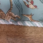 Smoke-free petfree Fantasy forest animals, birds, snakes and trees Green and off white cord border No holes rips tears or stain Measurements are approximate