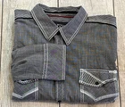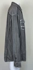 Gorgeous Buckle Black Athletic Fit charcoal gray stretch long sleeve snap up shirt in men's 2XL. The shirt has beautiful white stitching and black trim. It is lightweight and perfect for any occasion. This shirt is in excellent condition. No rips, tears or stains. Features: • Style Profile: Cowboy, Western, Classic, Retro, Rock, Grunge • Black snap buttons, stretch, point collar, flip cuffs, black trim, white stitching, embroidery, 2 button pockets, lightweight. • Machine Washable • Chest: 50 in •Length: 32 in This is a previously owned and used item. It may have signs of wear and previous use. We offer combined shipping to help save you some money!! Simply reach out to me to apply discount PLEASE NOTE: All measurements are approximate and taken with garment laid flat. Please look closely at pictures for measurements before purchasing. If you're not sure about the size, lay flat a similar item of your own and measure that item to compare with our measurements and feel free to message us with any questions. Colors may differ slightly in shade from photos to actual item due to variances caused by photography lighting and monitors. We greatly appreciate your business! Please remember to leave positive feedback if you are happy with your purchase! Thanks for looking!