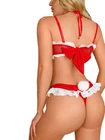 About this Item: 【Fabric】Mesh & Satin, Lace / Bright and Rich Red / Sheer / Beautiful white lace detailing and soft to the touch. Neck - Drawstring / Bra - Pull On closure Hand Wash Only 【Bra】Stretch Bralette / Adjustable Shoulder Straps / Unpadded / Unlined / Ties around the neck so you can adjust it to your height and chest size. 【Bottom】Thong / Irregular Cut Design / Made your booty looks bigger and waist looks smaller. 【Matching】Decorative Satin Ribbon Bow / Little Bell / Lace Ruffle / Little Fuzz Ball / Removable Mesh Bow 【Don't Miss】With some thigh high stockings and a sexy robe, made for a great Christmas wrapped look. 【Occasion:】For: a nice Christmas gift for your significant other, a Christmas themed photoshoot, great for spicing things up in the bedroom, honeymoon trip, Valentine’s day and heats up your night life. 【Package Content :】 1*Christmas Bodysuit