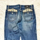 Burberry Black Label Flare Damage Denim Pants Jeans Nova Check Men Size 76 Used