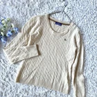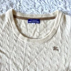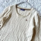 Burberry Blue Label Cable Knit Cashmere Sweater M White Beige Embroidered Logo Key Features **Burberry Blue Label Women's Cable Knit Sweater** - **Brand:** Burberry Blue Label - **Product Type:** Pullover Sweater - **Model:** Cable Knit Sweater with Horse Embroidery - **Color:** White/Beige - **Material:** 90% Wool, 10% Cashmere - **Size:** Marked size 38 (M) - **Measurements:** - Length: 51 cm - Shoulder Width: 39 cm - Chest Width: 43 cm - Sleeve Length: 58 cm - *Please note that measurements are taken by hand and may have slight variations.* - **Condition:** Excellent condition with no noticeable scratches or stains. Please refer to the photos for confirmation. - **Season:** Fall/Winter Elevate your wardrobe with this luxurious Burberry Blue Label sweater, perfect for the cooler months! Specifications Brand Burberry Blue Label Country Japan Product Description Item Title Burberry London Blue Label Cable Knit Sweater Cashmere Blend M Payment Supports managed payments Please pay within 5 days after auction is finished. About Us We are located in Japan. It's our pleasure to make you happy by proposing our recommend item. If you have any questions or request about items, please feel free to ask us. International Buyers - Please Note: -Import duties, taxes, and charges are not included in the item price or shipping charges. These charges are the buyer's responsibility. -Please check with your country's customs office to determine what these additional costs will be prior to bidding/buying. -These charges are normally collected by the delivering freight (shipping) company or when you pick the item up - do not confuse them for additional shipping charges. -We do not mark merchandise values below value or mark items as - gifts - The US and International government regulations prohibit such behavior. Thank you for your understanding.