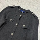Burberry Blue Label Knit Cardigan Silver Button Wool Blend Size 38 Key Features **Burberry Blue Label Knit Cardigan** - **Brand**: Burberry Blue Label - **Type**: Knit Cardigan - **Model**: Epaulette Knit Cardigan - **Material**: Wool blend - **Color**: Gray **Size Details**: - Size: 38 - Shoulder Width: 37 cm - Chest Width: 43 cm - Sleeve Length: 58 cm - Total Length: 52 cm **Condition**: - Gently used, showing minimal signs of wear. - Likely worn only 1-2 times, still in excellent condition. **Additional Information**: - Purchased from a reputable apparel recycling shop, authenticity verified. - Please note that the actual color may slightly differ from photos. - Item will be compactly folded for shipping; some creasing may occur. **Note**: Hangers and other accessories are not included. Please check the profile for more details before purchasing. Specifications Brand Burberry Blue Label Country Japan Product Description Item Title Grade Burberry Blue Label Long Sleeve Knit Cardigan Silver Button 38 Payment Supports managed payments Please pay within 5 days after auction is finished. About Us We are located in Japan. It's our pleasure to make you happy by proposing our recommend item. If you have any questions or request about items, please feel free to ask us. International Buyers - Please Note: -Import duties, taxes, and charges are not included in the item price or shipping charges. These charges are the buyer's responsibility. -Please check with your country's customs office to determine what these additional costs will be prior to bidding/buying. -These charges are normally collected by the delivering freight (shipping) company or when you pick the item up - do not confuse them for additional shipping charges. -We do not mark merchandise values below value or mark items as - gifts - The US and International government regulations prohibit such behavior. Thank you for your understanding.