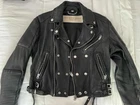 Embrace the Burberry Brit biker look with this authentic leather jacket made in Hungary. The iconic motorcycle jacket features a sleek black color, crafted from high-quality leather that exudes luxury and style. The jacket is designed with a regular fit for men, and the size 34 will fit most riders comfortably. Made in Hungary: Size M Authenticated by Authentic Detective In perfect condition, no flaws whatsoever Used only a few times Weight of is approx. 2kg All sales are final