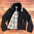 Burberry Knit Outer Black Nova Check Lining Fur Collar Size M Key Features **Burberry Knit Outerwear with Fur Collar** - **Brand:** Burberry - **Product Type:** Knit Outerwear - **Model:** M Size - **Color:** Black - **Material:** - Main: 60% Cotton, 40% Acrylic - Collar: 100% Polyester - Lining: Polyester - Front Placket: Faux Leather - **Size Details:** - Length: 49 cm - Width: 40 cm - Sleeve Length: 57 cm - **Features:** - Removable rabbit fur collar - Nova check lining - **Condition:** Gently used; please note that it has been stored by a non-professional. *Please refrain from lowball offers and holding requests.* Specifications Brand Burberry Blue Label Country Japan Product Description Item Title Burberry Knit Outer Fur Collar Black Nova Check Lining M Payment Supports managed payments Please pay within 5 days after auction is finished. About Us We are located in Japan. It's our pleasure to make you happy by proposing our recommend item. If you have any questions or request about items, please feel free to ask us. International Buyers - Please Note: -Import duties, taxes, and charges are not included in the item price or shipping charges. These charges are the buyer's responsibility. -Please check with your country's customs office to determine what these additional costs will be prior to bidding/buying. -These charges are normally collected by the delivering freight (shipping) company or when you pick the item up - do not confuse them for additional shipping charges. -We do not mark merchandise values below value or mark items as - gifts - The US and International government regulations prohibit such behavior. Thank you for your understanding.