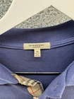 Elevate your wardrobe with this Burberry Men's Blue 1/4 Button Up Shirt. This shirt is perfect for any occasion, whether you're going on a business trip or just hanging out with friends. The shirt is made of high-quality cotton and is machine washable, making it easy to care for. Featuring a spread collar and short sleeves, this shirt is perfect for the summer, fall, or spring seasons. The shirt is solid blue in color and has an embroidered accent. It's a regular fit, size XL, and the chest size is 44 inches. This designer shirt is part of the Burberry Brit product line and is a classic piece that will never go out of style.