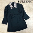 Burberry Nova Check Navy 3/4 Sleeve Shirt Jacket Full zip Women Size M Used