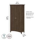 32W x 16D x 63H Storage Cabinet includes five shelves for organizing a kitchen pantry or dining room Three adjustable shelves accommodate items of various sizes while two fixed shelves provide stability Each of the Pantry Cabinet's shelves supports up to 50 pounds Doors open on smooth Euro style hinges for easy access to food, utensils, dinnerware and other kitchen supplies Distressed finish options include a cream colored Antique White, Pure White with Shiplap Gray, Cape Cod Gray, Vintage Black, Ash Brown, Reclaimed Pine and Driftwood Gray