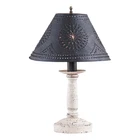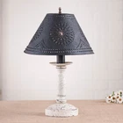 The Butcher's Lamp Base is a smaller sized lamp that is perfect as an accent lamp or a bedside lamp. One E26/Medium (Standard) socket, 150 watts max. Textured and slightly distressed white body color. Handcrafted in Pennsylvania. Includes a 12-Inch Textured Black Flared Shade #925-1CBK. Lamp base without shade and alternate shade options are shown under related items below. Our eBay Store About Us Add to Favorite Sellers Butcher's Lamp in Americana White with Shade Measures 18.75-Inch high and 12.5-Inch diameter Has a 7-foot cord and line switch; Plugs into wall outlet; Standard socket, 1 x 150 watts maximum watts. UL listed for dry locations Textured vintage white paint finish; Black textured shade is included Lamp Base is made in the USA, Shade is Imported The Butcher's Lamp Base is a smaller sized lamp that is perfect as an accent lamp or a bedside lamp. One E26/Medium (Standard) socket, 150 watts max. Textured and slightly distressed white body color. Handcrafted in Pennsylvania. Includes a 12-Inch Textured Black Flared Shade #925-1CBK. Lamp base without shade and alternate shade options are shown under related items below. Product Details Color White Height 18.75 Length 12.5 Weight