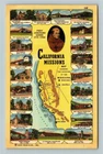 CA-California, California Missions, Map, Landmarks, c1947 Vintage Postcard