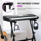 Heavy-Duty Z-shaped Keyboard Stand: Designed with a Z-shaped structure, the CAHAYA keyboard stand is sturdy and reliable, providing a wider support area with a maximum load capacity of 250lbs, ensuring your electronic keyboard stays securely in place, eliminating wobbling and tilting. Easy Adjustment: The digital piano stand's height and width are easily adjustable, with a height range of 21.2in-32.4in and a width range of 21.8in-35.2in. Simply lift the knob to achieve precise height and width adjustments without the need for cumbersome disassembly, perfectly accommodating the majority of 44-88 key keyboards for a more comfortable and effortless playing experience. Comfortable Playing, Freedom of Choice: The unique Z-shaped design allows you to choose whether to play sitting or standing, maintaining a comfortable posture and utilizing space efficiently for accessories such as pedals. It adapts to players of different heights, allowing you to fully enjoy the pleasure of music both standing or sitting. Comprehensive Protection: Each contact point of the piano stand is equipped with non-slip pads, providing comprehensive protection against scratches and impacts on your electronic keyboard. Additionally, two securing straps are included to firmly fasten the keyboard, preventing any unexpected sliding during performance, allowing you to focus on your music. Floor Protection and Item Hanging: Four adjustable-height bottom pads ensure stable support on uneven surfaces while safeguarding your floors from damage. Furthermore, two angle-adjustable hanging hooks can be used to hang items such as headphones, keeping your performance space tidy and organized.