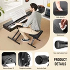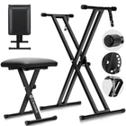 CAHAYA Keyboard Stand and Bench Set: Both the keyboard stand and keyboard stool feature an X-shaped design, particularly the keyboard stand, which has a double-stem design, each stem is 1inch thick to ensure greater stability and strength while also requiring less space. Adjustable Height: The keyboard stand can be adjusted to 7 different heights ranging from 13 to 39in, suitable for keyboards from 61 to 88 keys. The piano stool can be adjusted to 3 different heights, from 16.3 to 19.6in, according to your needs, allowing you to play the keyboard either standing or sitting. Easy to Transport and Store: Both the piano stand and the piano stool are foldable and can be folded down when not in use to reduce floor space. High Load Capacity: The piano stand can support up to 250lbs, and the keyboard stool can support up to 370lbs, so you don't have to worry about them bending. Easy to Assemble: Assembling this CAHAYA keyboard stand and piano bench set is not a complicated process and should not take more than 15 minutes. If you have any issues or questions, please feel free to contact our customer service team!