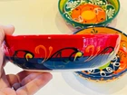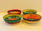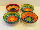 The CERAMICA EL TITI Hand-Painted 6.25" Bowls set of 4 originates from Spain and features a round shape with a multicolor design. Made of ceramic, these decorative bowls are dishwasher safe and boast a glossy finish. Produced using pottery techniques, each bowl is hand-painted with intricate designs, adding an artistic touch to any table setting. The brand, Ceramica El Titi, ensures the originality and quality of these unique bowls, making them an ideal choice for all occasions. CERAMICA EL TITI Hand-Painted Bowls Set of 4 Made in Spain Size: 6.25" x 1.75" bowls Each round bowl is made of high-quality ceramic material Features a beautiful multicolor glossy finish with a hand-painted decorative design Vivid, incredibly beautiful colors Dishwasher safe No chips, cracks, or repairs. Excellent condition
