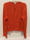 Elevate your wardrobe with the Charter Club tangerine open sweater, a versatile addition that brings a touch of feminine energy to your workwear or travel attire. Fashioned with a classic crew neck and long sleeves, this cardigan in size XL offers a regular fit for all-day comfort. Its tight-knit fabric, a soft blend of cotton and rayon, ensures both warmth and breathability.The sweater's design features a ruffled hem for a hint of flair and a button closure that adds a sophisticated touch. Machine washable for easy care, it's ideal for those who appreciate a preppy, yet effortless style. Whether layered over a blouse for the office or draped over a sweater for a fall outing, this piece is a timeless choice for any season. The sweater is preowned never used.