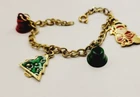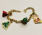 CHRISTMAS CHARM BRACELET Dangle Enamel Gold-Tone 6.75" Bell Snowman #JJ