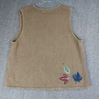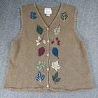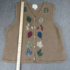 CHRISTOPHER & BANKS HAND EMBROIDERED WOMENS GREEN BUTTON FRONT AUTUMN LEAVES SWEATER VEST SIZE LARGE. RAMIE AND COTTON BLEND. FULL BUTTON FRONT. V-NECK. CORDUROY LEAF DETAILS ON FRONT AND BACK. MEASUREMENTS PROVIDED. Items ship from a pet friendly home. *Items ship from a smoke-free home. *Colors may vary due to lighting. *Please read descriptions. Any flaws will be noted and photographed. *I source my inventory from multiple sources. I can not speak on fit for items. I try to provide photos of measurements when possible to assist in fit. *Clothing items are laundered, inspected, and sealed in plastic bags after photos are taken. This ensures you receive the item in the condition it was photographed in. Due to this process, additional details and measurements can not be provided. *Reasonable offers considered. *If you have any questions, please ask. Buyer is responsible for reviewing all photos and descriptions for condition details. Although I do my best to find and disclose any flaws, there may still be flaws present that were missed unintentionally in human error.