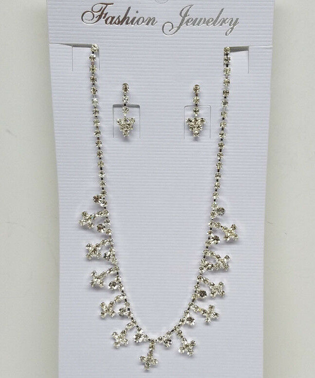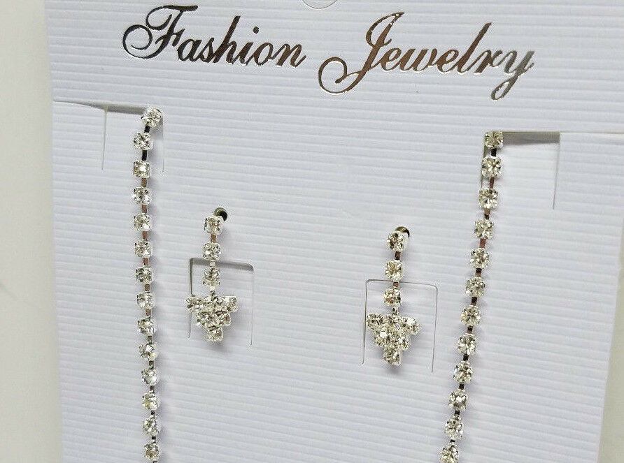 BRAND NEW WOMEN'S FASHION JEWELRY SET. Beautifully Designed Silver Necklace & Stud Earrings laced with Sparkling Rhinestone Crystals. Necklace adjustable 16''-18'' with Lobster Clasp. Great for that special occasion - Wedding, Bridal, Prom, Sweet 16, Parties, etc. Nice Quality Item / Well Crafted / GREAT Price Please check my auctions for more Fashion Jewelry. Super low prices - make great gifts. PLEASE TAKE A MOMENT TO VIEW OUR OTHER LISTINGS AND VISIT OUR STORE FOR A LARGE SELECTION OF ADDITIONAL ITEMS ALWAYS FEEL FREE TO CONTACT US WITH ANY QUESTIONS YOU MAY HAVE Item will ship by USPS First Class Mail w/ tracking #. >>USA SELLER<< with fast same day shipping (Monday - Saturday) if paid by 5pm Eastern Time. We combine shipping for multiple purchases. Buyer is charged shipping on the item with the highest shipping cost, all additional items ship for free. If shipping outside the USA, buyer must use the "eBay Global Shipping Program".