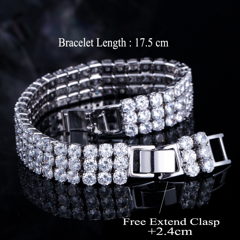 CWWZircons 3 Row Round Cubic Zirconia Silver Plated Big Wide Bridal Bracelets Specifications: 1. Condition: New 2. Material : Cubic Zirconia 3. Bracelet Size : 17.5 cm +2.4 cm extended clasp Features: 1. Cubic Zirconia High Quality Material - Diamond-like Brilliance , Prong Setting and CZ Stone are stable. 2. A Perfect Jewelry Gift for Women , Girls , Mother , Wife , Lover , Fiancee , Friends . 3. Suitable for Various Occasions: Ideal for Wedding, Prom, Pageant, Parties, Homecoming, Black Tie Formal Affairs, Holidays , Birthday , Christmas , Valentine's Day , Anniversary and Special Occasions. Package Includes: 1Pc Bracelet Payment Delivery details Terms of sales & Feedbacks About us & Contact us Our commitment Payment 1. We only ship item to your Ebay verified address . Please Make sure all address are the same 2.Please leave note in ebay when making the payment if you have any special request (colors/size). Delivery details We only send items to the registered eBay address.Items will be shipped within 2 business days from the date payment is received (not include public holiday and weekend) . As per eBay regulations, import duties, taxes, and customs charges are the buyer's responsibility. Please check with your country's customs office to determine what these additional costs may be prior to bidding or buying. Terms of sales & Feedbacks After-Sale Please contact us to request a return/replace/refund authorization .It will be best if you use ebay message to contact me. 1, Return and replacement request is available only the requests within 30 days after parcel received. 2, Returning the item as the same condition as received. Situation and solution Defectives ---Please contact us and provide a photo of the defective part. After situation confirmed,we will offer you refund/return/replacement according to the situation Not as Described ---Please contact us and provide a photo of the wrong part. After situation confirmed,we will offer you refund/return/replacement according to the situation Not Received ---Please undersatnding shipping on the way was out of our control ,because of the busy shipping season,holidays,bad weather or force majeure etc. It may be delay for days. But if it took too much time and not deliveried, Please message me, I will offer you solution for it. Feedbacks 1. If you are satisfied with our service, please leave us a + Good feedback and rate the details of the transaction (DSR) with a. . When you rate the shipping time part please take international transit into consideration.] Your recognition will make us more confident to develop business and serve you better. 2. Please contact us first if you have any problem with the items,we will solve it in time ! 3. Please do not leave Neutral or Negative Feedback before you contact us, Thanks For Your Business ! About us & Contact us Working time: Chinese time(Eastern eight zones):Monday to Friday ,9:00 am to 6:00 pm. We do not work on chinese legal holiday. Message reply: We will reply all messages within 24 hours of business time. Please contact us via ebay message, it was the best way for both you and us to solve problems. Any questions or anything you need, please feel free to contact us. Our commitment 1.Wholesale price will be offered to you if you need in bulk ! 2.About Size
