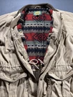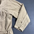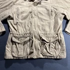 *Please review all photos closely due to jacket having several small spots on front left sleeve and jacket having one small hole on front left chest near pocket as well as canvas exterior having some color fade from washing use and wear to prevent return.* Embrace the great outdoors with this rugged Cabela's field jacket in beige. Designed for the avid hunter or fisherman, this mid-length coat is made from durable cotton canvas and features a warm polyester lining. The jacket boasts a variety of features including a suede leather collar, drawing waist, interior pockets, and a zip closure. Ideal for colder weather, this fleece-lined coat is perfect for staying warm while out on the hunt or fishing trip. The solid beige color and overcoat style make it a versatile addition to any outdoor wardrobe. This jacket is machine washable and made to last with high-quality materials. Chore Coat Barn Coat Hunt Fish Work Oilfield Construction Feed Lot Farmer Rancher Lined Warmth Winter Wear Cabela’s Outdoor Gear Outside Duck Canvas Heavy Durable Pipeline GasPlant Industrial Foundry Roustabout Construction Builder Fishing