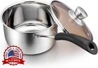 Cacerola De 2 Cuartos Con Tapa Coleccion Utensilios De Cocina Color Astilla NEW. 【Material de primera calidad】La cacerola de 2 qt está hecha de acero inoxidable 18/10 puro y saludable sin revestimiento químico tóxico, no reacciona con los alimentos para alterar los sabores naturales, saludable para su uso diario en la cocina 【Artesanía exquisita】Mango firmemente remachado al cuerpo para un agarre equilibrado, manijas de baquelita y un gran orificio en el extremo del mango para un almacenamiento resistente al calor y fácil de colgar, la superficie cepillada está diseñada para lucir elegante en la cocina y limpiarse fácilmente, apto para lavavajillas y refrigerador 【Cocción visible】La tapa está hecha de vidrio templado de primera calidad que ayuda a cocinar comidas saludables fácilmente y para una cocción visible, bloquea el sabor, el calor y la humedad de los alimentos, un orificio de alivio en la tapa libera el exceso de vapor para reducir el derrame de agua y mantener la estufa limpia 【Calienta de manera uniforme】La cacerola de acero inoxidable transfiere el calor de manera rápida y uniforme, la tapa ajustada en la cacerola aceleraría la cocción para ahorrar tiempo y energía de cocción, nuestra cacerola podría funcionar en estufas de gas y eléctricas, estufas de cerámica, PERO no es compatible con Horno e inducción 【Multiusos】La cacerola de 2 cuartos es suficiente para preparar comida para 2 o 3 personas. Disfrute de una cocina más saludable y deshágase del aluminio y los tóxicos. Eficiente para usos múltiples diarios en la cocina del hogar, como calentar leche, hervir huevos, cocinar fideos, pasta o sopa.