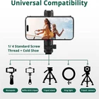 Camera Hot Shoe 360 Rotatable Phone Mount Holder Tripod W Cold Shoe for Mic1436 [Newest Phone Tripod Mount]Cell Phone Mount Tripod design with 360° Rotatable, you can attach extra LED light, microphone or other filming equipment. It helps to record steady videos for , and platforms and live streaming channels. [2 Cold Shoe Mount & 1/4 inch Screw Thread]The mobile phone tripod mount is equipped with two cold shoe mounts, allowing you to attach microphones, photography lights, and other accessories. Additionally, the cold shoe mounts can be easily rotated to adjust the angle of your equipment.Also features a standard 1/4 inch screw hole, making it compatible with tripods, selfie sticks, monopods, cameras, stabilizers, video sliders, ring lights, handle grips, and other accessories. [360° Adjustable Phone Holder] phone tripod adapter has an adjustable angle design,adopts 360° rotation design to support from different angles,allowing you to adjust the pitch angle on a tripod or camera hot shoe without needing a ball . It's more convenient and easy to use. [Quick Release]With the quick to mount smartphone tripod adapter to tedious. You just need to pull the spring, insert the phone and it will be fixed automatically. When you want to the phone, pull the spring clip, which is easy and convenient. Material: plastic colour: black Package Contents: 1 x Phone Mount Holder