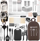 Color brown-pro Material Stainless Steel, Silicone Number of Pieces 50 About this item SILICONE CAMPING COOKWARE: Unleash hassle-free outdoor cooking with the Wesqunie 50pcs camping cooking set. Made from food-grade silicone and stainless steel, camping cooking set is BPA-free and compact—perfect for camping kitchen essentials. INSTANT READ THERMOMETER: Camping kitchen set includes thermometer accurate results in just 2-3 seconds, featuring a instant thermometer dial easy-to-read display, a perfect camping gift for any food lover, barbecue enthusiast, or professional chef. ESSENTIAL CAMPING GEAR: level up your outdoor kitchen with our must-have camping utensil cooking set. Sharp knives, compact case, travel-friendly – these camp cooking utensils ensure you're always ready for camping expeditions. PORTABLE GRILLING TOOLS: upgrade your camping kitchen set with tailgating essentials! A portable camp utensil set with a case that includes 12-inch tongs, a knife-fork set, and telescopic marshmallow sticks is perfect for campfires and camping grills. OUTDOOR DINING SET: elevate your camping cookware set with the camping dish set for 4. This chic tableware ensemble features stylish cutlery and plates for 4, making camping kitchen cooking an ideal camping mess kit for glamping and picnics. Item Package Dimensions L x W x H 16.1 x 12.01 x 4.33 inches Package Weight 3.02 Kilograms Color brown-pro Material Stainless Steel, Silicone Part Number Wes051 Outer Material oxford Sport Type Camping & Hiking Skill Level Professional