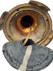 Candle Stick Hollywood Regency Design Tall Vintage Brass & Wood Table Lamp. In excellent condition Brass Candle Stick Lamp Large Hollywood Regency Vintage 1950s. Mid-century Modern, Hollywood Regency brass candlestick table lamp in Vintage bronze finish, with dual bulbs, and brass bell pull strings. Measurements 6.75ʺ W 8.5ʺ D 26.75ʺL STYLES Hollywood RegencyTraditional PERIOD 1950s ITEM TYPE Vintage, Antique or Pre-owned MATERIALS Brass Not included light bulbs or shade. This is a pre-owned item that may show signs of wear. In excellent condition, no flaws.