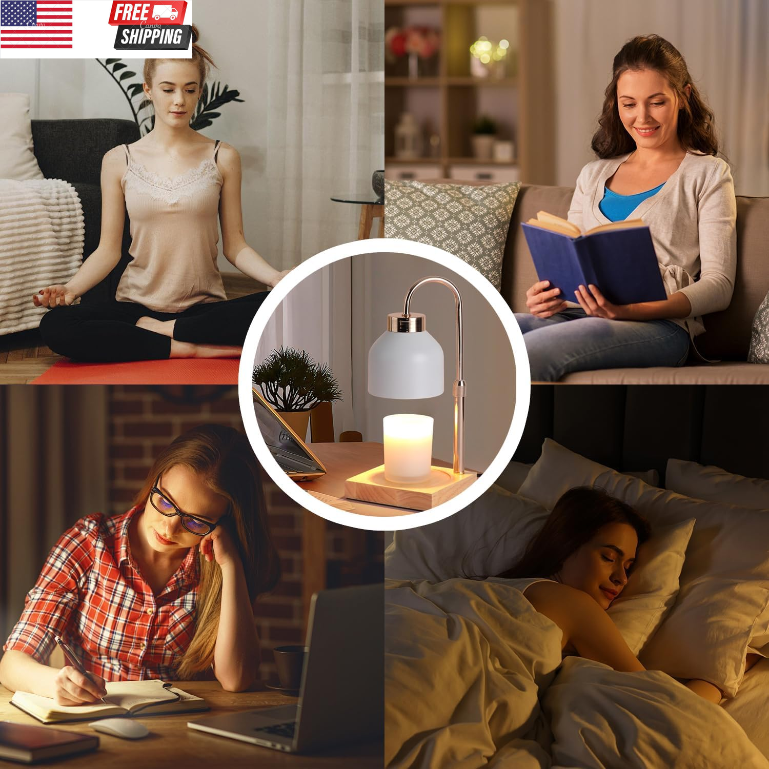 Love this candle warmer lamp! The adjustable height and 4 dimming levels let me control the fragrance intensity perfectly—strong scent when bright, subtle when low. It melts wax evenly without burning, making candles last way longer. The timer is super handy for safety, and the sleek white design fits any decor. A great gift for moms or anyone who loves cozy vibes! Comes with extra bulbs too. Highly recommend!