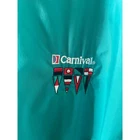 Pre-owned in very good condition. Vintage Carnival Cruise line and nautical flags logo at left chest 100% nylon Fully lined Zippered hand pockets Hood can be rolled up and zipped into neckband Ribbed knit cuffs, armpits and hem Men's size M Measures approximately: 24.5" pit to pit and 27" in length