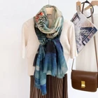 $ 20.91Vintage Cyan Floral Pure Silk Scarf for Women - Head Bandana Kerchief Turban 53cm