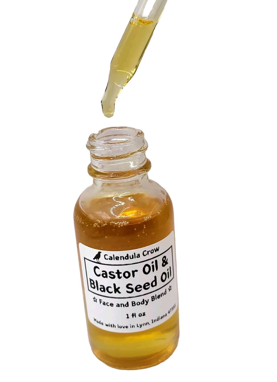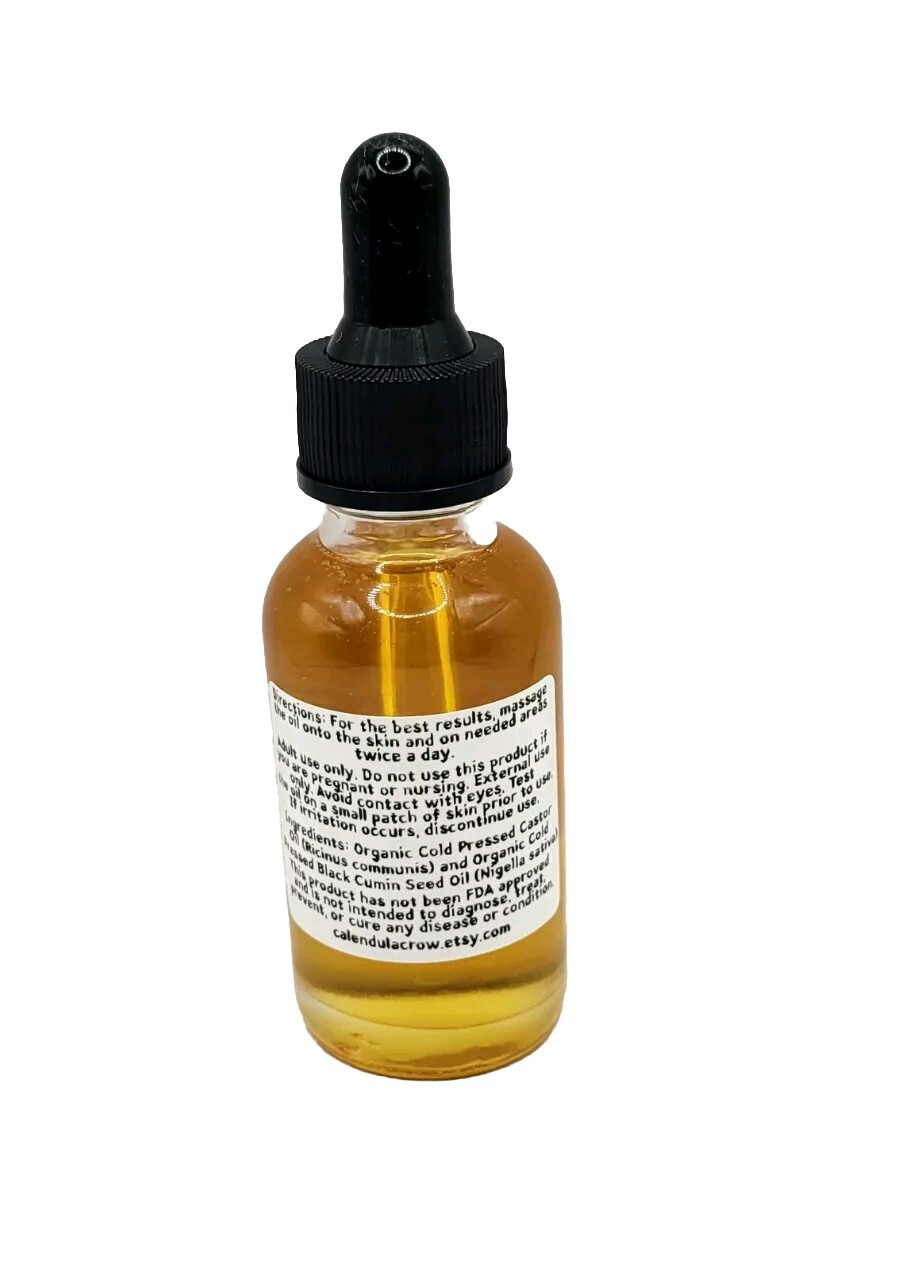 CASTOR & BLACK SEED OIL - Face Oil, Body Oil, 1 Oz Dropper Bottle Amazing! ▪︎ You've probably heard how amazing Castor Oil and Black Seed Oil are, and we've had quite a few customers request this oil from our shop. This blend is made with organic, cold pressed oils and comes in a 1 oz dropper bottle. A very luxurious and pure oil that can be used on the face, body, hair, nails, etc. Your skin will thank you! Ingredients: Organic Cold Pressed Castor Oil and Organic Cold Pressed Black Seed Oil 📌 Adult use only. Keep out of reach from children and pets. Do not use it if pregnant. Not for human consumption. External use only. Avoid contact with eyes. Test the product on a small patch of skin prior to use and discontinue use if any irritation occurs. Please consult a physician before use if you are pregnant or breastfeeding. 🪴 I have worked with herbs and oils for over 20 years, it's truly my passion. I create all of my products using top-quality ingredients and make everything in smaller batches to ensure quality and freshness. Raw materials are sourced from the same, reputable vendors to maintain a high level of consistency within our products. Thank you for allowing me to help you.