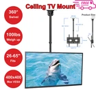 Ceiling TV Mount Bracket LCD LED Plasma 26-65 inch Tilt Swivel Height Adjustable NOT DELIVERED TO MIAMI-DORAL-Warehouse- OUT OF STOCK ADDRESS. All order use Stock address and PO box address will be cancel. Please don't make order Specifications : Ceiling Display Mount - ideal for most 26-65" LCD LED plasma flat panel display weigh up to 100lbs (45kg) Adjustment - 15° tilting of TV plate, +/-90° tilt of wall plate (or 360° swivel) to achieve the ideal screen viewing position Compatibility - compatible with VESA 100x100mm-400x400mm, fits both flat ceiling and sloped ceiling Feature - height adjustable from 21.25" to 30.7", integrated cable management Package - 1×ceiling mount, 1×standard installation kit, 1×user manual Product Description: Height Adjustment 4 levels height adjustment of pole. Angle Adjustment Tilt 15° of TV. +/-90° Tilt Tilt +/-90° of wall plate if installed as the way above. 360° Rotation Rotate 360° of installed as the way above. Step 1 Two ways of connecting wall plate and outer pole: +/- 90° tilt or 360° rotation. Step 2 Connect outer pole and inner pole if needed. Then connect pole and TV plate. Step 3 Install Hooks on the TV. Step 4 Hang the TV on the TV plate (2 people needed). Shipping & Handling: Processing Time: 3 – 5 business days. Standard US Shipping Time: 2 - 9 business days. Shipping Time WW: Average 7 - 10 business days, maximum 15 business days for some location. Term of Sale: We reserve the right to deny payment from unverified PayPal accounts or any suspicious or fraudulent activity. We reserve the right to end the auction earlier when there is problem with the item. We will make refund / reshipment if there's defect on our product or if we sent the wrong size/product code. Buyer should send picture(s) of the item(s) that have problem for our reference. Shipping charges are not refundable. Feedback: Positive feedback will be given once payment received. If you are satisfied with our product please kindly leave us a positive feedback and good ratings. If you have any issue / problem with our product, please contact us and give us a chance to solve your problem before leaving any neutral or negative feedback. Contact Us: Should you have any question please do not hesitate to send message on eBay. We will reply you within 24-48 hours and make sure you will have a good experience having business with us.