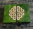 The Celtic Knot Keepsake Box is a handmade wooden square trinket box featuring a Celtic Knot pattern, perfect for storing small treasures or keepsakes. With a mystical Celtic theme, this original piece is ideal for all occasions and can be placed in any room of the home. The box is cleaned with a damp cloth and made in Poland, offering a unique and stylish addition to any space.