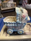 Bassinet flower pot that is nearly 50 years old. Perfect gift for a baby shower or for a newborn.