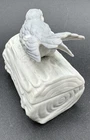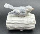 Ceramic Bisque Bird on Log Trinket Box by Crowning Touch Japan Removable Lid 3x3