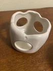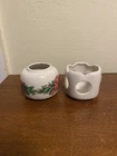 There is a chip and a crack on the bottom piece, comes with two candle holders