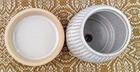 Ceramic Flower or Succulent or Herb Pot & Saucer White with Tan Ridges 3.75"T . Measurements are approximately 3.75" tall. The bottom of the pot 4". The opening of the pot 2.5". Condition is Brand New/Unused. Saucer is not attached to pot for easy cleaning. Hole in bottom of pot for drainage. If you have any questions, please contact us. Shipped USPS. We ship vintage and new items. We carefully pack with care to ensure the safety of each item. We do not pass these packaging costs onto the buyer. Furthermore, we do not charge any extra fees for handling. We only charge for the USPS shipping charge. We do monitor shipping prices frequently. In most cases, we do find the USPS to be the most inexpensive way to ship our products. We try to be as detailed as we possibly can in our photos and descriptions. We try to mention any imperfections in our vintage items. We may miss things from time to time or our photos may not be enough clarification for you to see the item. We will be glad to answer any questions or send you more photos. If at any time, you have a question or issue, please contact us immediately. We will contact you within 24 hours. We want to make sure you have a good experience in purchasing any of the products. If you are happy with your purchase, please leave feedback. It will help us to grow and offer more great items in our store! Thank you for your interest in one of the many products in our eBay store! Renee Burly Owl Lady