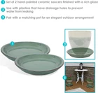 Store New Arrivals Add to Favorite View Feedback Contact Ceramic Outdoor Flower Pot Saucers Set of 2 - UV- and Frost-Resistant - Seafoam Glazed Finish - 9-Inch Description Style Contemporary Pattern Solid Material Type Ceramic Theme Vegetable Finish Types Glazed Paint Is the item dishwasher safe? Yes Material Ceramic Seasons All Seasons Additional Features Weather Resistant Included Components Saucer Item Weight 4 Pounds Special Feature Weather Resistant Color Seafoam Material Features Weather Resistant Global Trade Identification Number 00810011717299 Shape Round Is the item microwaveable? Yes Manufacturer Decor Net Content Weight 1.81 Kilograms Style Name Contemporary Size 9 in Fits 9" planters: These planter plates have a 11.75" outer diameter (9.25" inner diameter) and a 1.75" H outer edge (1" H inner edge). Each saucer weighs 4 lbs. Designed for beauty and strength: These ceramic planter dishes are hand-painted with a rich, glazed finish and placed in a kiln for classic, shining beauty. Please note, variations in color may occur due to manual glazing and the unique kiln firing process. Includes 2 saucers: Use these plant drip trays indoors or outdoors with favorite planters. Prevent planter drainage hole leaks: Place each saucer beneath a planter with drainage holes to prevent soil and water from leaking onto the floor and other surfaces. Worry-free purchasing: Sunnydaze Decor backs its products with a 1-year manufacturer's warranty. Product Description Protect Your Floors Add a touch of style to your planters with these elegant ceramic saucers This round hand-painted glazed ceramic saucer tray is a great tool to use with planters that have drainage holes to prevent water from leaking all over the floor, ground or other surfaces. It features vibrant color selections and has a raised edge to collect excess water and soil spillage. Use them in the house, on the patio, deck, or porch. Available in 6 Stylish Colors Imperial Blue Gray Forest Lake Green Seafoam Pearl Obsidian Indoor or Outdoor Use These stylish planters can be used in a variety of places, including the patio, front porch, sunroom, or entryway. Elegant Glazed Finish Each planter features a shiny glazed finish in vibrant shades for a unique eye-catching look. For Use with a Variety of Planters These planter saucers come in sets of two and are available in three sizes to accommodate many types of planters. ABOUT US We offer the best prices around on high quality products. Our E-store includes media such as books, movies, music and games while offering electronics, toys, sporting apparel, clothing, tools, general home, garden items and more. SHIPPING We are always working hard to ensure your package arrives as soon as possible. Please understand that some factors like weather, high postal traffic, and the performance of shipping companies are outside of our control. We offer free shipping to the lower 48 states and ship within 2 business days of payment, usually sooner. We do not accept P.O. Boxes. Please provide a physical address. For shipping outside of the continental USA, we only use eBay's Global Shipping Program.The item is shipped to KY and then sent to the rest of the world. International customers are responsible for all duties and taxes. Continue to check out in order to calculate costs for shipping the item to your country. Messages regarding eBay's Global Shipping Program MUST be directed at eBay EXCLUSIVELY. RETURNS We offer a 30-Day Return Policy on items which you are not completely satisfied with. You have the option for a full-refund or an exchange of the item. No returns are available on items shipped outside of the USA. PAYMENT We accept PayPal. CONTACT US This page content is yet to come Please ad us to your favorite seller and visit again later Thank You CUSTOMER SATISFACTION We try our very best to make sure every customer is completely satisfied. If there's a problem, message us! We're happy to help. WE ACCEPT Copyright © 2021 AutoDS. | All Rights Reserved