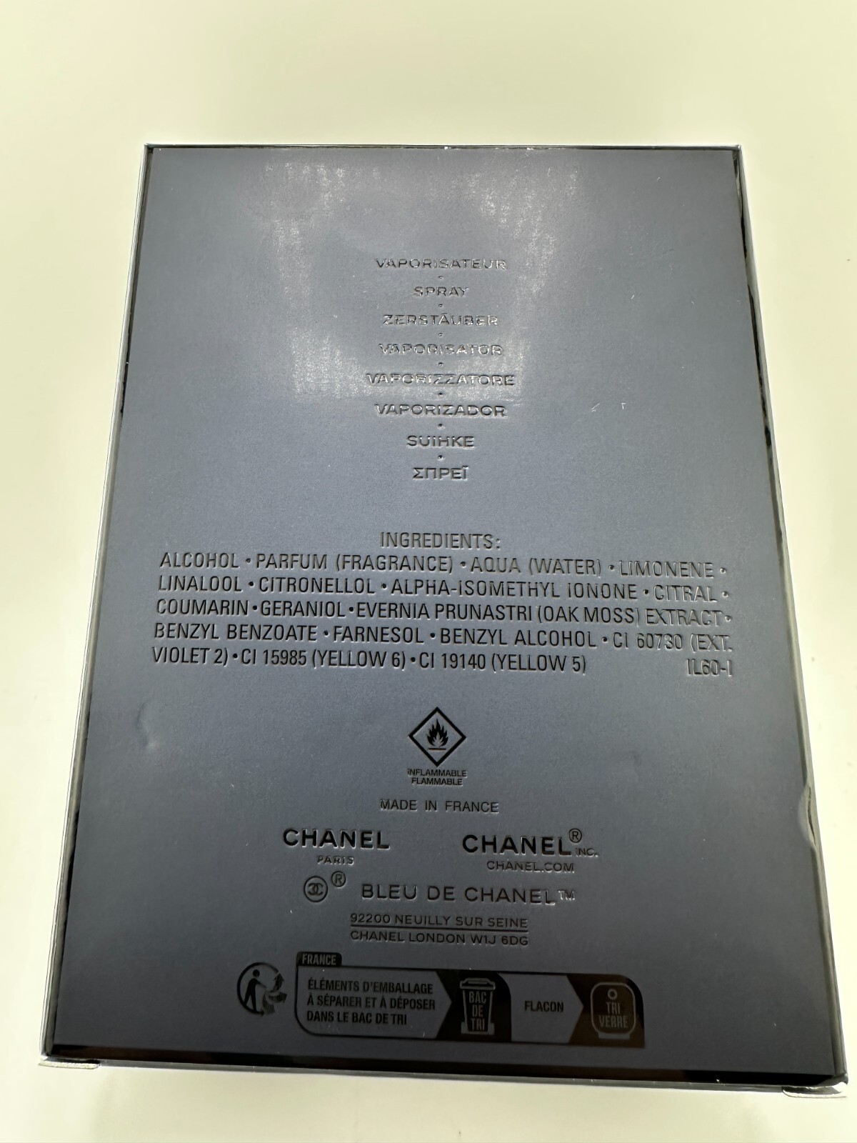 **EMPTY PERFUME BOX** BLEU DE CHANEL by Chanel 150ml/5.0 fl oz *NO PERFUME* Just the box.