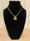 Color: Gold Type: Necklace Pendant/Locket Type: Charm Theme: Beauty, Fashion & Costumes, Love Main Stone Shape: Chanel Symbol Necklace Length: 16 in Main Stone Color: Gold Brand: CHANEL Main Stone: Rhinstones Occasion: Anniversary, Birthday, Christmas, Confirmation/Communion, Engagement, Graduation, Mother's Day, Valentine's Day, Wedding Number of Gemstones: 24 Signed: Yes Style: Pendant Pendant Shape: Chanel Symbol Metal: Yellow Gold Plated Chain Type: Snake