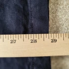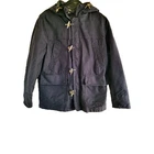 In good condition with no holes or stains. Size 42R. Measures approximately 22" pit to pit and approximately 29" in length. The navy blue heavyweight canvas material is lined with polyester and features a full zip closure with toggles. The jacket is a short to mid-length coat with long sleeves and a regular fit, making it comfortable and practical for everyday wear. The jacket has a solid pattern and numerous pockets. It is machine washable and made. The jacket is ideal for winter and outdoor activities.