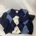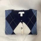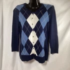 Charter Club Blue Argyle Button Up Cardigan Preppy Sweater Size Small