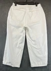 These Charter Club Capri Pants are in womens size 8P with a white color. They have a straight leg style, mid rise, and feature a zip and button closure. Made of spandex and cotton, they offer stretch and easy care. Suitable for occasions like travel, parties, or casual wear, these pants have a 20-inch inseam and a flat front design. Perfect for the summer and spring seasons, they have a beach, flower, and bohemian theme. Very good preowned condition with normal preowned wear and no issues. Please see all photos. For clothing specifically, see photos for all measurements and/or any issues if applicable. Pay close attention to the measurements as the size of the garment may quite possibly be different than the actual measurement(s) due to washing, shrinkage, or stretching as these are used clothes. The size in the title is the size on the tag of the garment. See photos for measurements of actual measurements as they may differ. ALWAYS CHECK THE MEASUREMENTS IN THE PHOTOS. This will remove any questions on measurements as well as always cover the possibility of human error in the listing(s) in the case of a typo or oversight. All clothing and shoes have been washed/cleaned, and comes from a smoke free environment. If shoe trees appear in the photos, they are for photography purposes only to illustrate how the shoes look filled out, and are not included. I am available for questions. I accept or negotiate reasonable offers. Have an amazing day. Thank you.