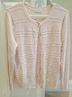 Like new light pink cardigan. Perfect for Valentines Day. It measures 20 inches across the chest and 26 inches from top of shoulder to bottom . THANK YOU.