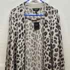 Charter Club Luxury Cashmere Large Open Front Cardigan Gray Animal Print This beautiful luxurious snow leopard Cashmere Cardigan is new, with tags and no noted flaws. Please see all photos as this is the exact garment you will receive. Suggested retail $199.00 Measurements taken with item laying flat- armhole to armhole is 20", length from high point of shoulder to bottom hem is 31". 100% cashmere, dry clean only. Thanks for looking! P7